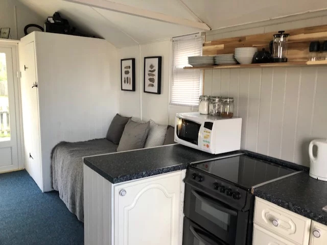 There is a separate enclosed toilet and washbasin within the chalet. Warm, clean communal showers are located in the nearby shower block directly behind the chalet and are available exclusively for chalet guests.