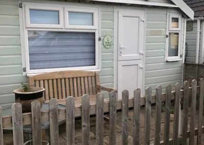 The chalet is lakeside, situated just behind the shop and office, within one minute of the beach and close to the tennis court. It enjoys sun on the patio throughout the day and benefits from parking directly to the front. The chalet is fully enclosed with a picket fence and is dog friendly.
