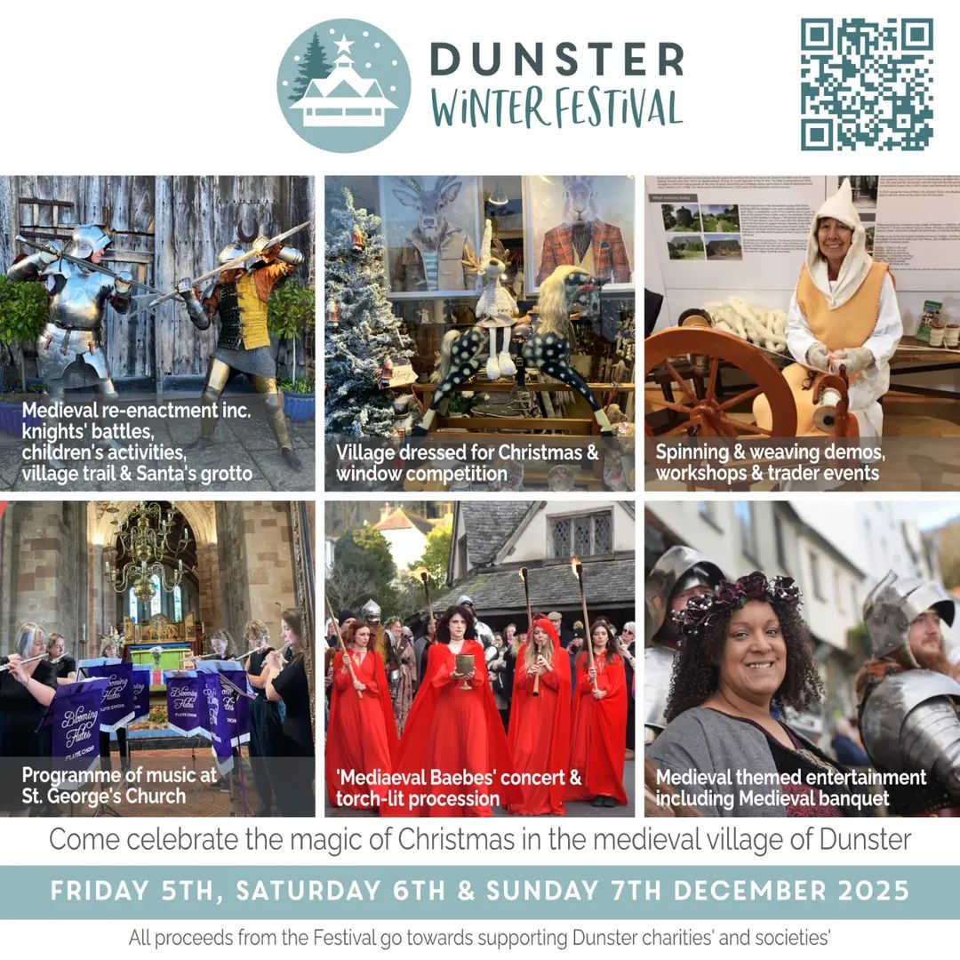 The Dunster Winter Festival 2025 brings together history, music, tradition and festive magic in one of England’s most beautiful villages. Whether you’re here for the medieval displays, Christmassy atmosphere, gift shopping or family activities, you’ll find something special around every corner.