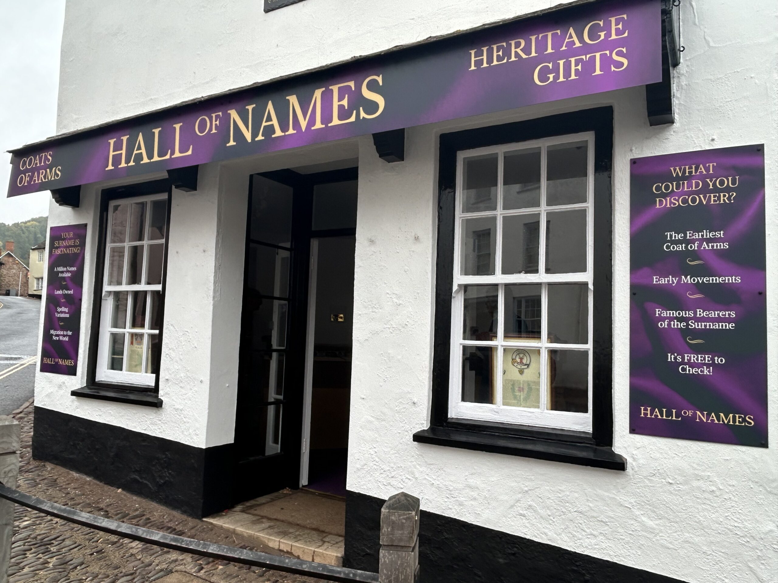 Whether you’re searching for a unique gift or exploring your own heritage, our Dunster shop provides a warm welcome and a memorable experience. You can also browse the full collection online at www.hallofnames.org.uk where there is also a wealth of information about the fascinating history of surnames.